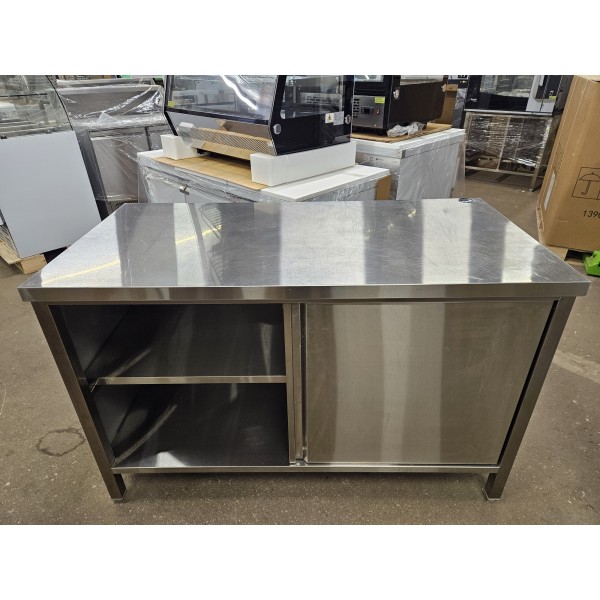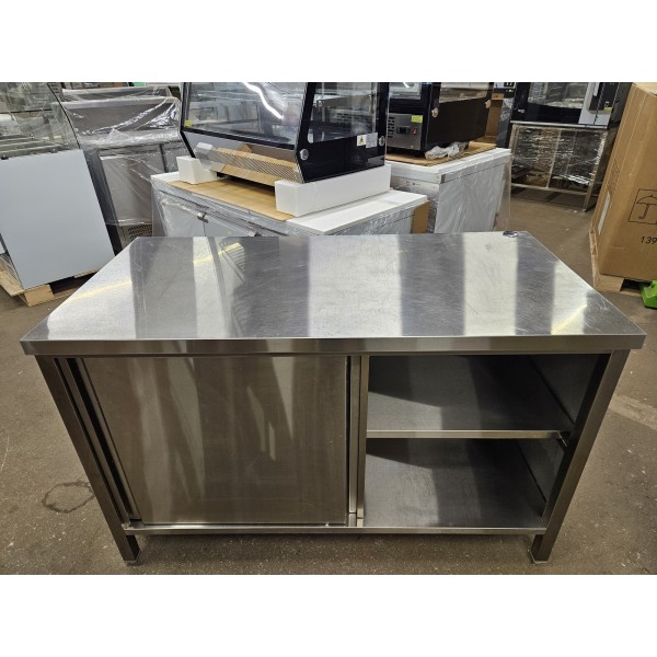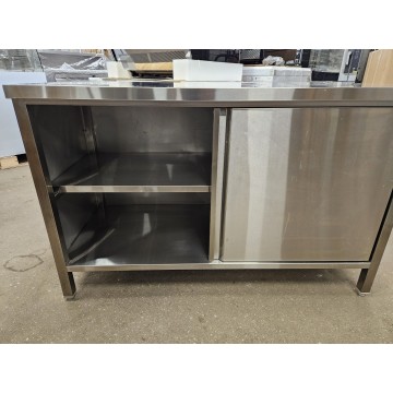 Counter fridge with top cooling for 3 x GN 1/1. Used. 2 doors at the bottom. Dimensions: 1200 x 650 x 900 mm. Temperature: +2/+8 C. Power: 0.56 kW/ 220 V.