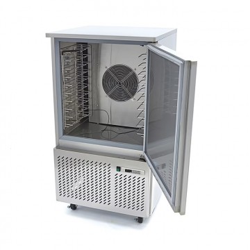 Габаритные размеры: 800х800х1600 мм. Внутренние размеры: 670x400x790 мм. Количество уровней: 10 x GN 1/1 или 10 x 600х400 мм. Расстояние между лотками: 40 мм. Мощность: 980 W/ 230 V. Охлаждение с +70°С до +3°С за 90 мин. — 40 кг. Заморозка с +70°С до -18°С за 240 мин. — 28 кг. Электронная панель управления. Функция разморозки в конце цикла. Термощуп в комплекте. Корпус и камера из нержавеющей стали. 4 колеса с блокировкой. Вес: 160 кг.
